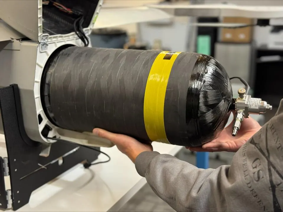 “It’s safely stored at less pressure than a spray paint can,” says Flanagan